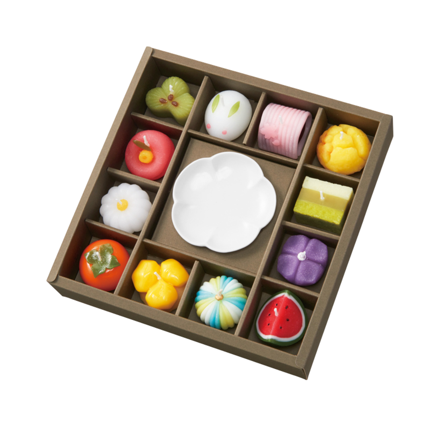 內容物:季節和菓子造型蠟燭 12 個、陶器皿 1 個