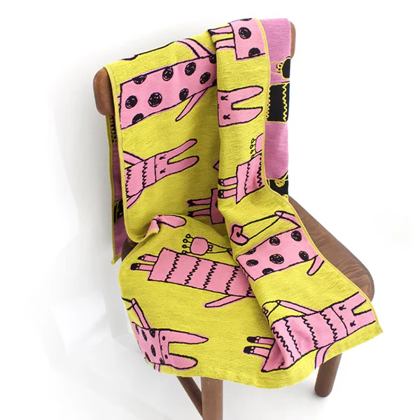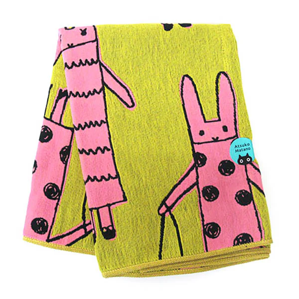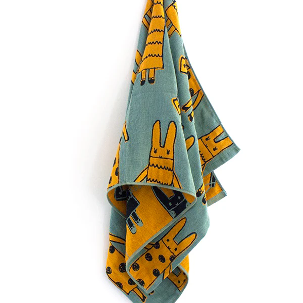 有趣的設計,浴巾上到處都是時尚的兔子。它由三層優質紗布製成,給您蓬鬆柔軟的觸感。產於日本今治市,100%棉。