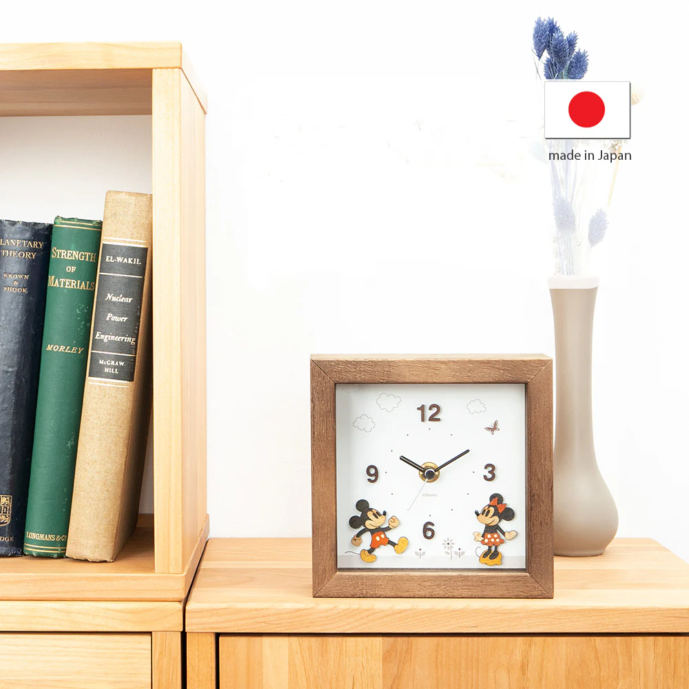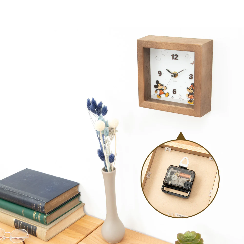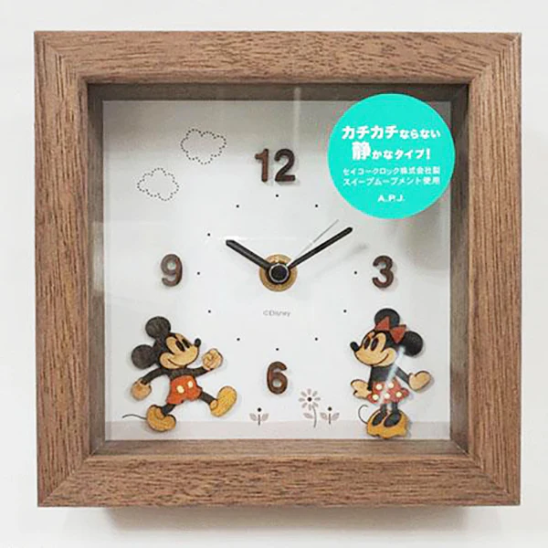 米奇和米妮由木片製成,與天然木框架相匹配。可以放在桌面上或掛在牆上。帶來寧靜的家居風格。日本製造,安靜的聲音。