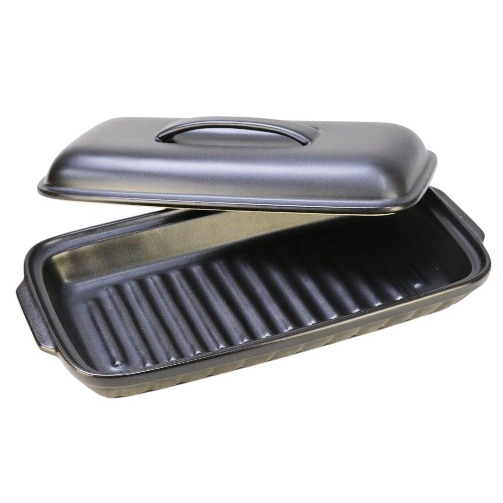 日本陶瓷烤盤連耐熱蓋 – 纖薄設計,不僅產生少量煙霧,還能讓食物外脆內嫩,讓您輕鬆享受美味。