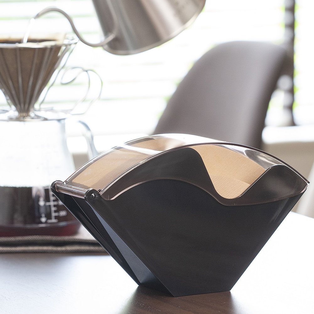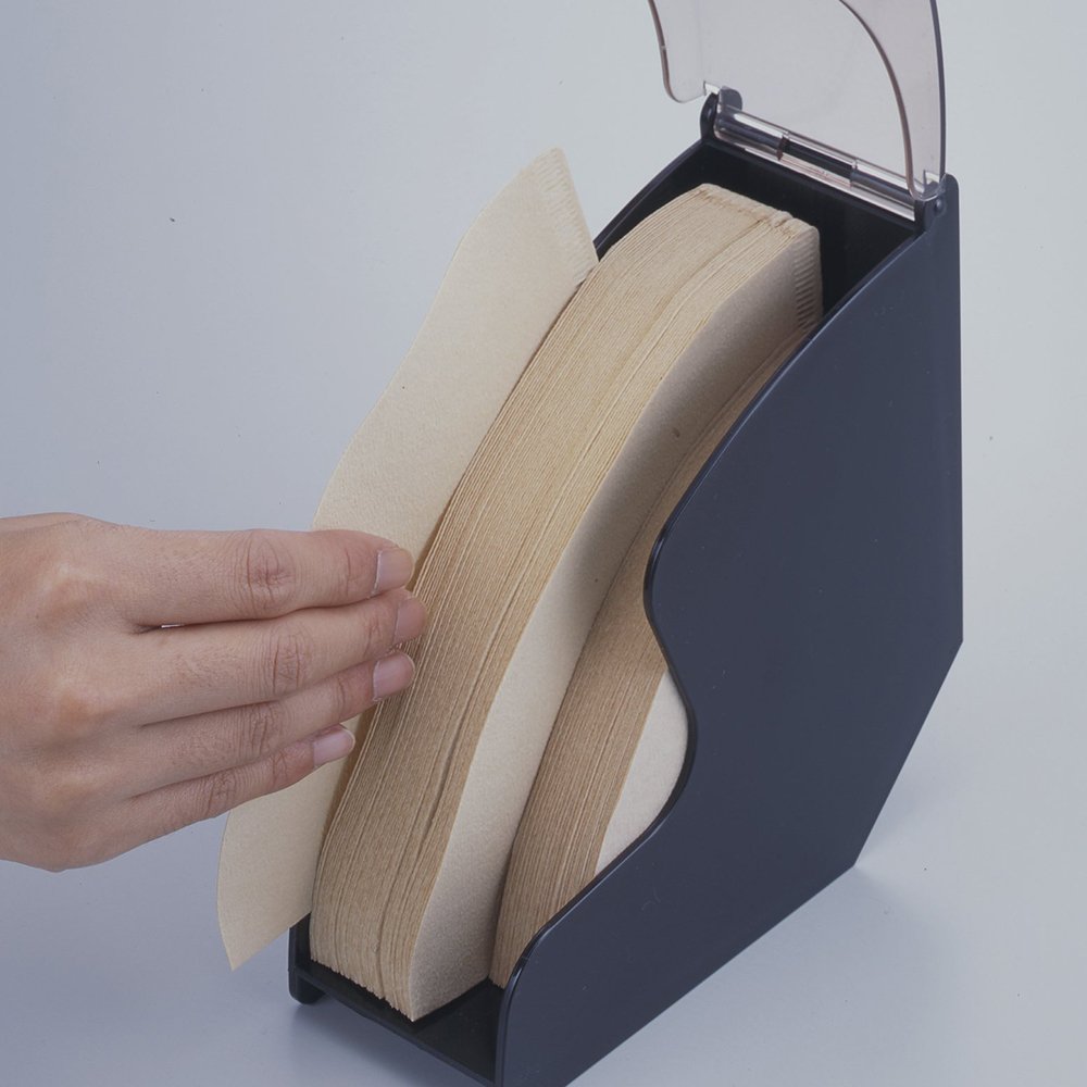 這款咖啡濾紙收納盒可同時容納兩種大小的濾紙(2-4人及5-7人用),最多可放置100張。設計靈活,可從不同角度擺放,透明蓋讓您隨時掌握餘量。提供兩種顏色選擇,完美融入您的廚房風格。