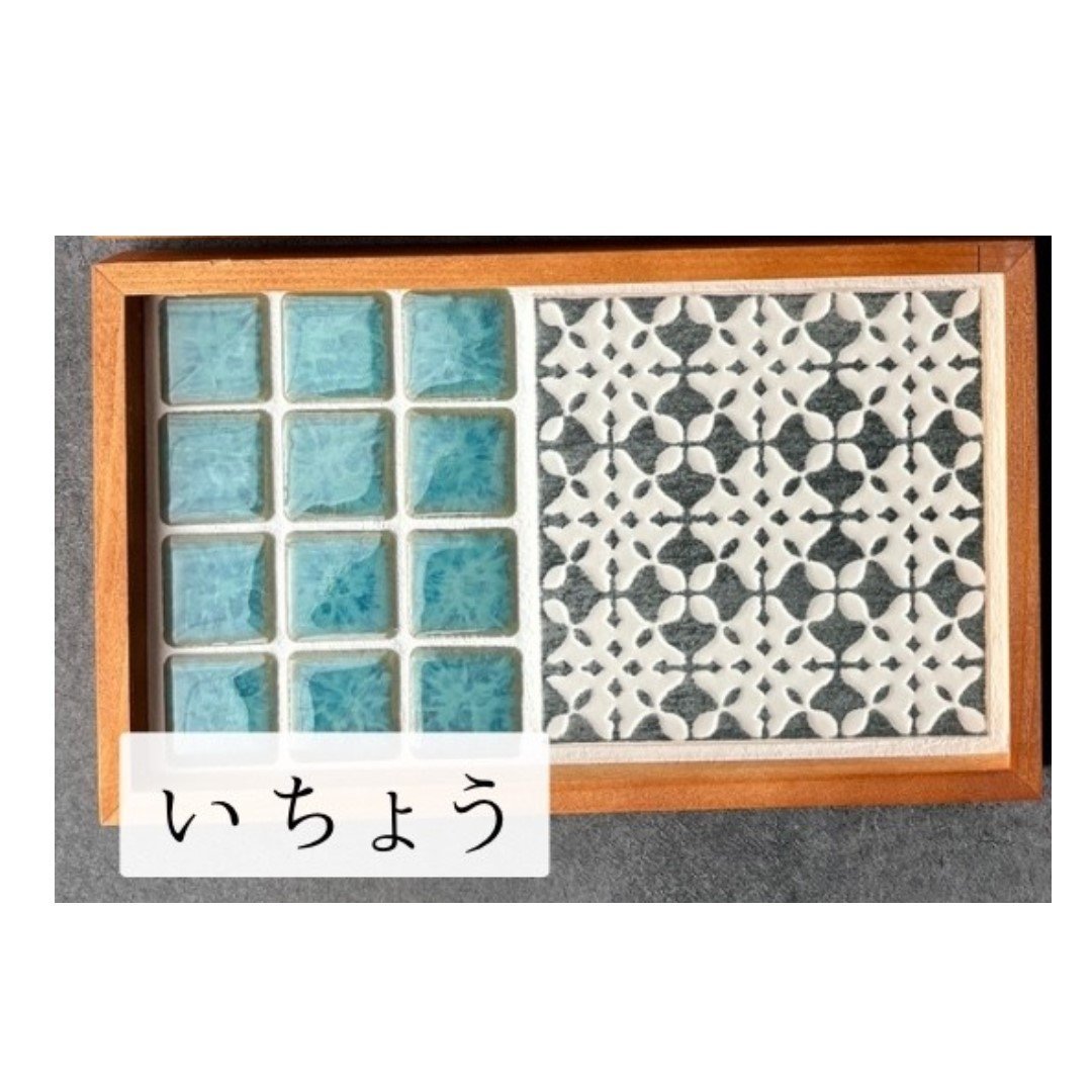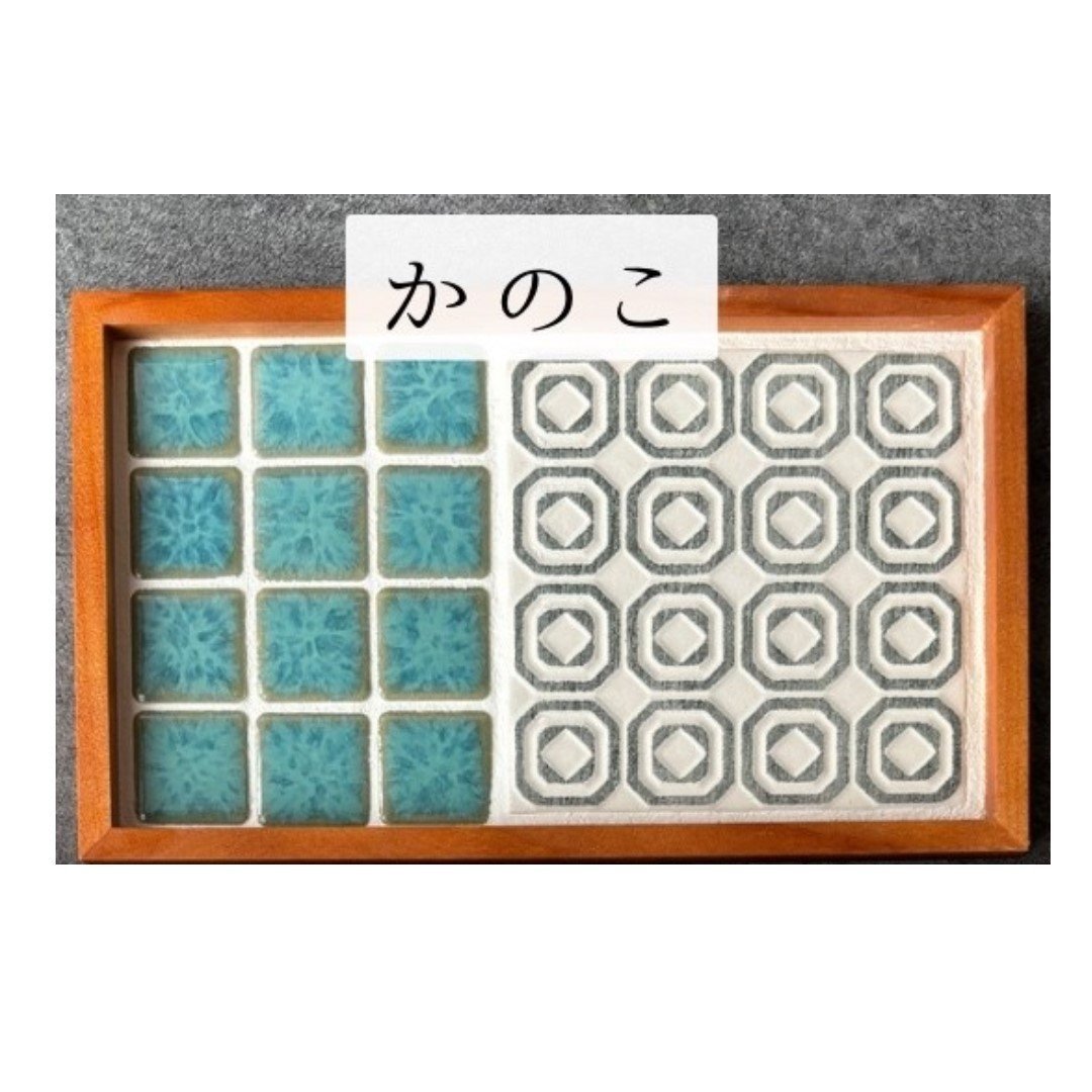 日本製SATOMIMI 咖啡托盤 其中鹿子與手鞠兩個款式放在木枱面的側面圖