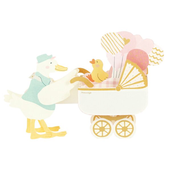 立體嬰兒賀卡-粉紅色鴨子嬰兒車