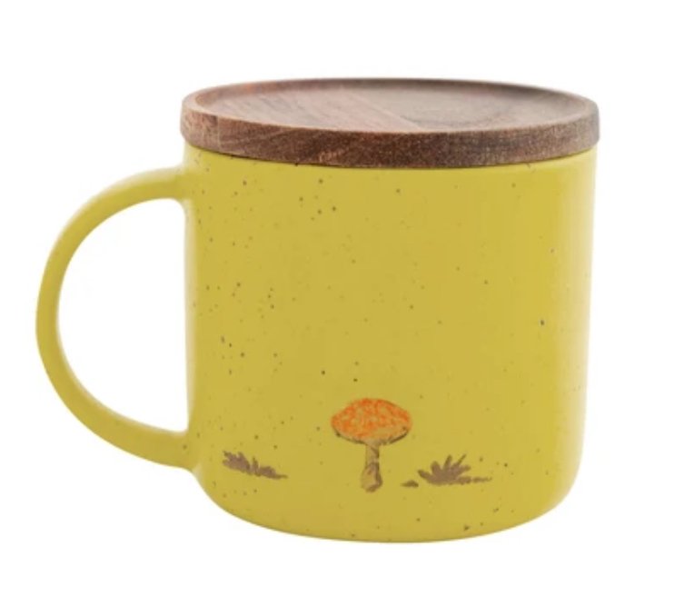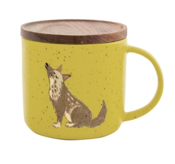 帶有木蓋的杯子以夜行動物為主題,天然木製作的杯蓋也可作為杯墊使用。杯身的使用了含有鐵粉的啞光釉料,散發出一種溫暖的氛圍。