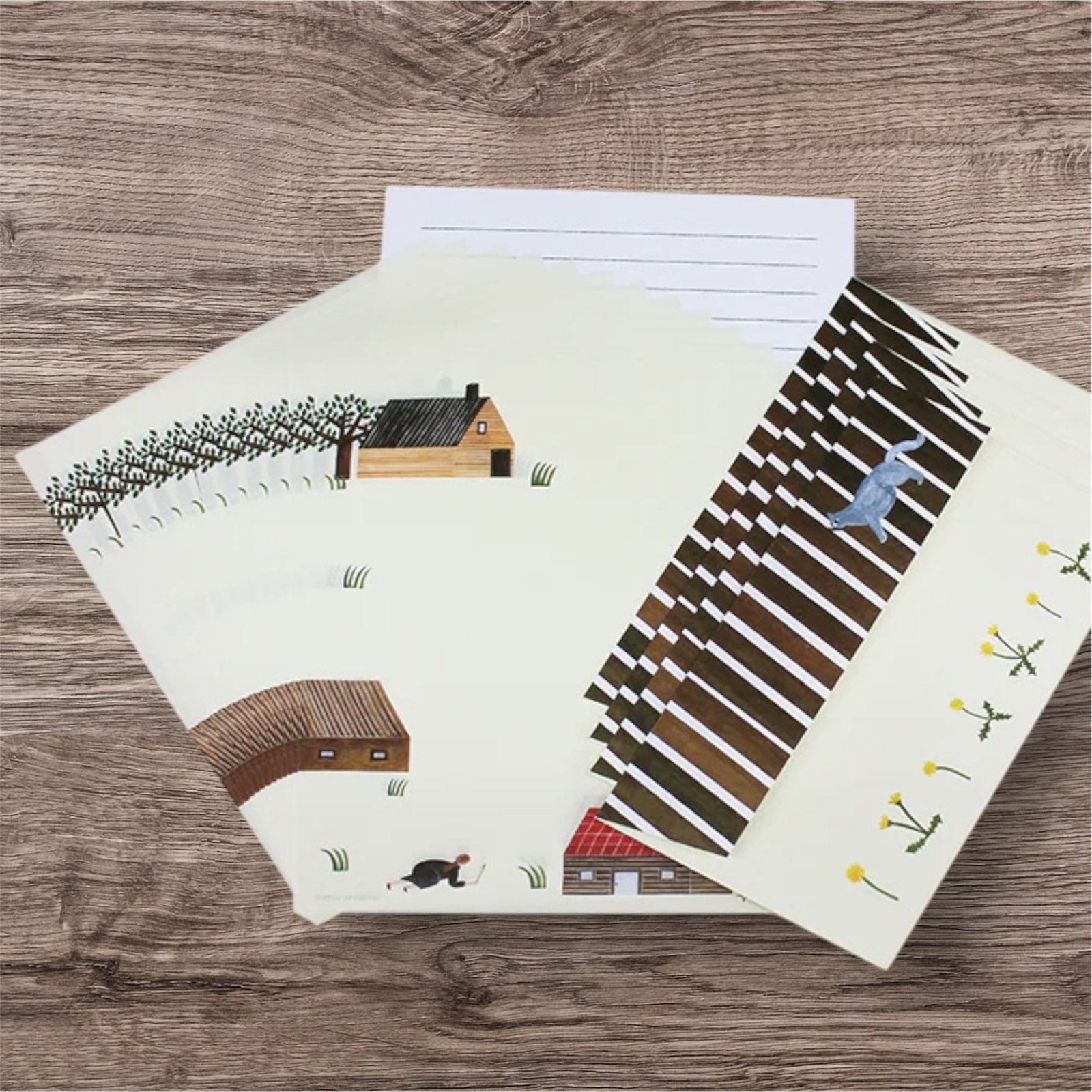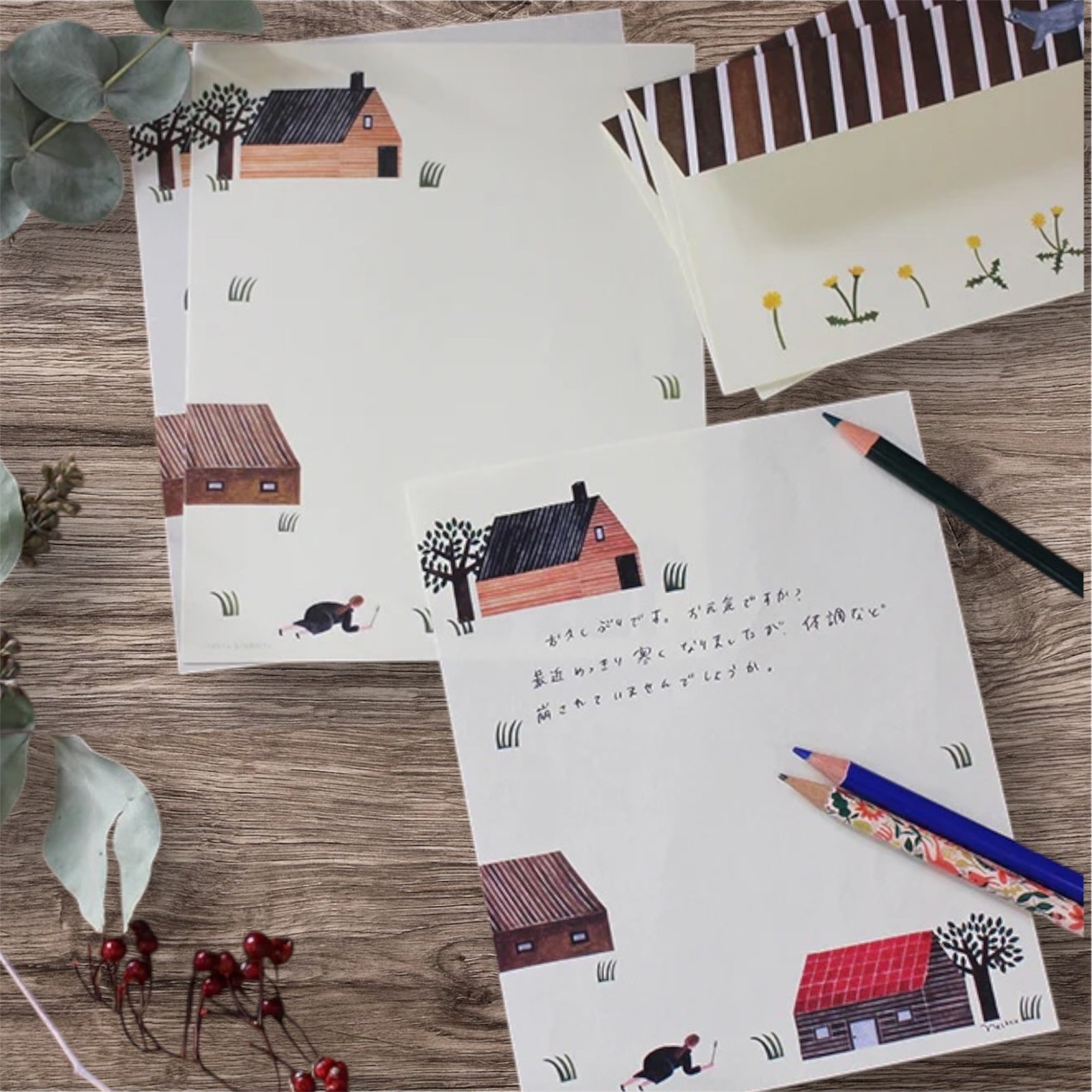This Japanese stationery set lets you send cute letters. The set contains 12 sheets of letter paper and 4 envelopes, all made of high-quality Mino Washi paper.