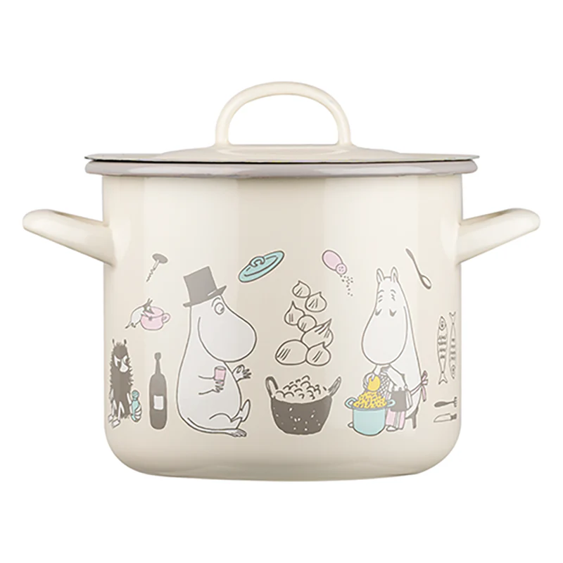 This Moomin European-made enamel stockpot is a convenient way to cook, stew or reheat food on any heat source. Designed for cooking and serving.