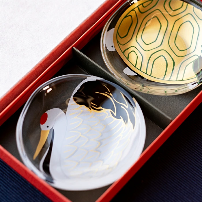 In Japan, mascots are believed to bring happiness and good fortune. These glass dishes feature them beautifully. Ideal as a lucky charm or a gift for weddings, housewarmings, and birthdays.