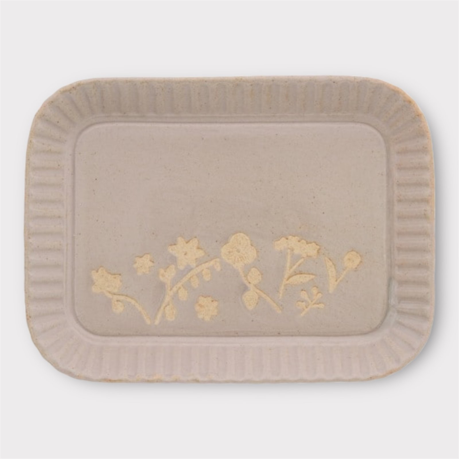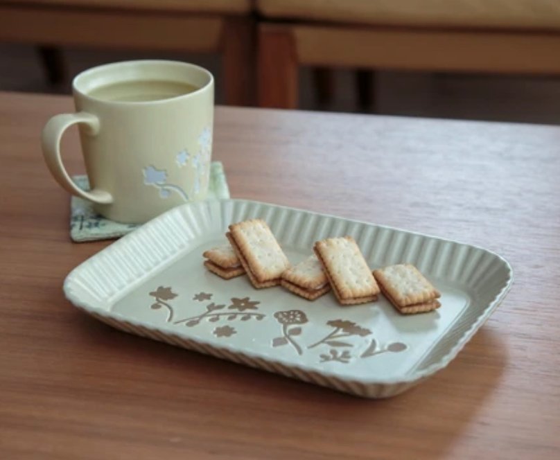 The waterproof bouquet design on the plate resembles paper-cut art, showcasing the brown clay beneath. This handcrafted piece reflects Hasami porcelain's unique charm, with wavy edges adding softness. Its moderate size is ideal for various dishes, enhancing the dining atmosphere.
