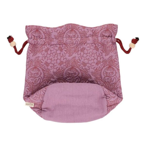 This drawstring bag boasts stunning, intricate embroidery complemented by charming Little My illustrations. Inside, it features well-organized compartments and a stylish striped fabric lining, blending practicality with elegance.