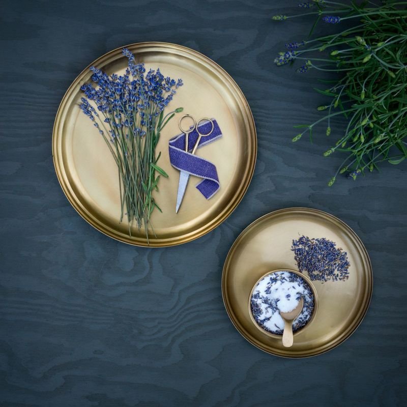 A high-sided round tray. Its surface features delicate lines, creating a casual feel. It can be used as a serving tray or simply placed on the countertop to display nuts and dried fruit. It's also perfect for a quick break, perfect for tea, madeleines, and other snacks.