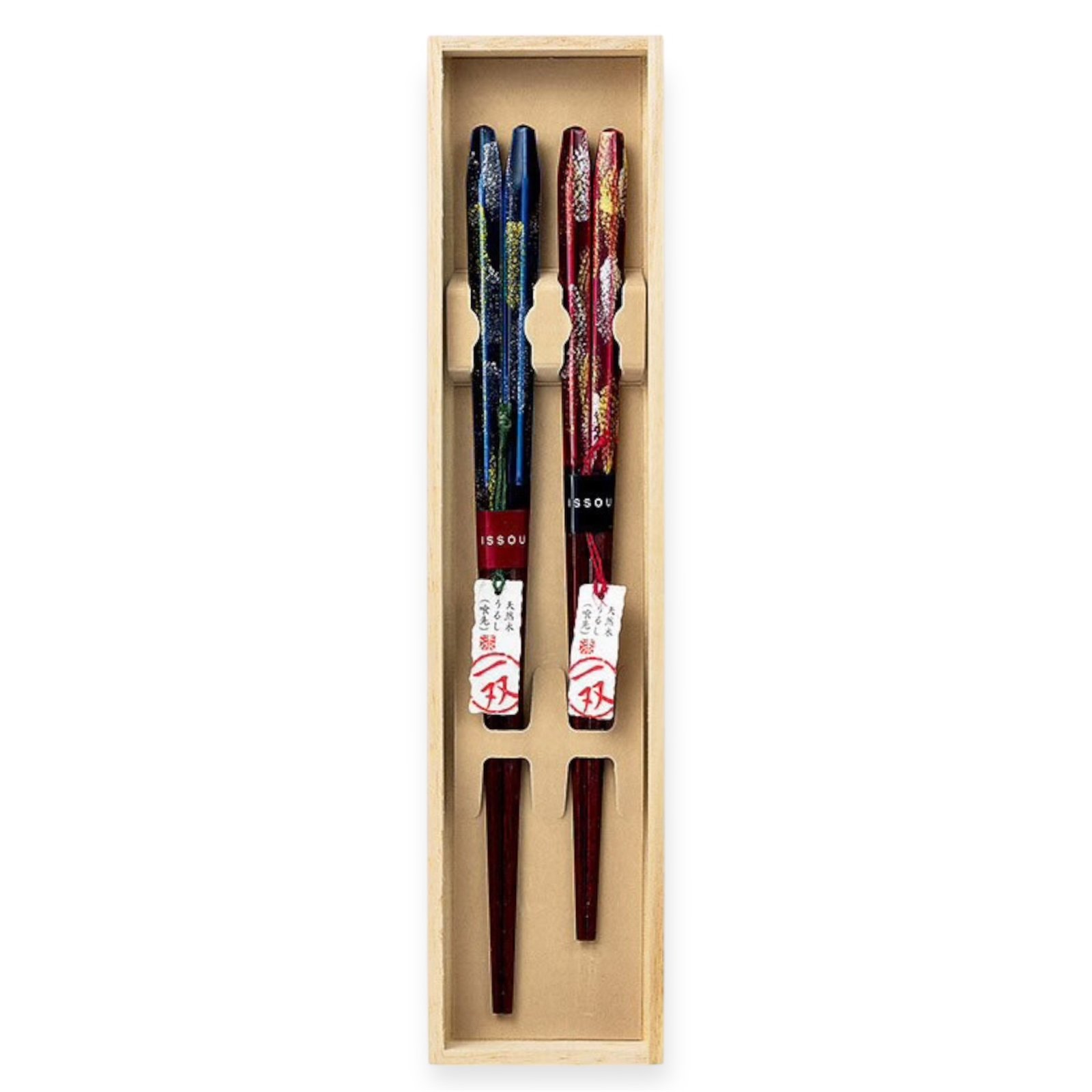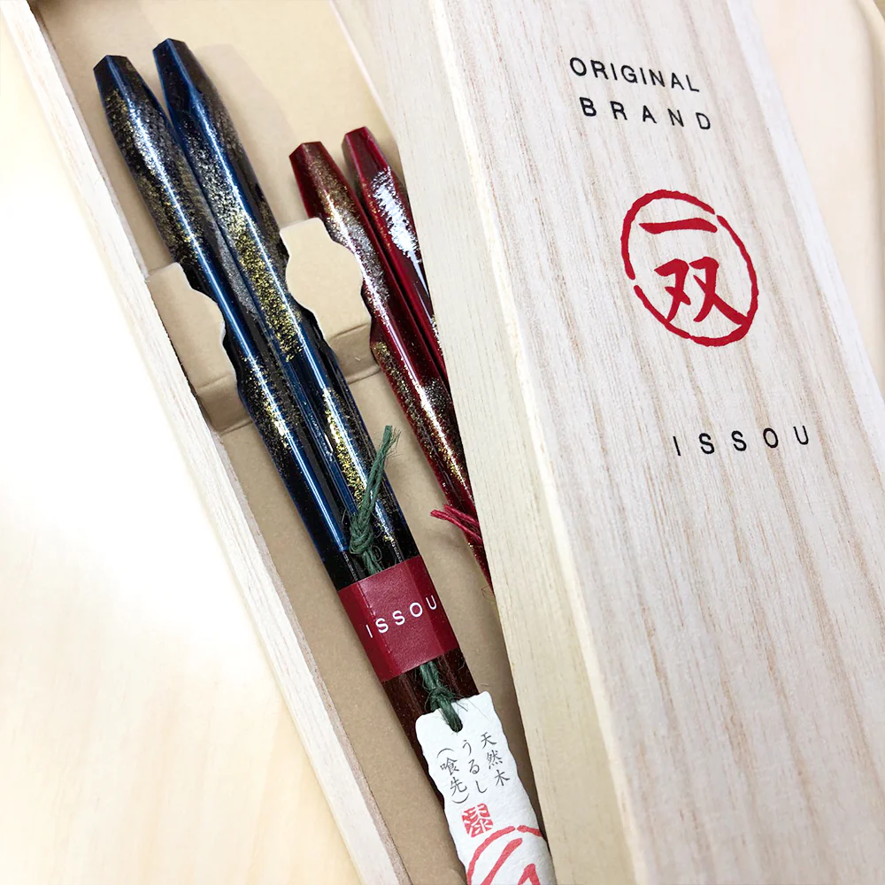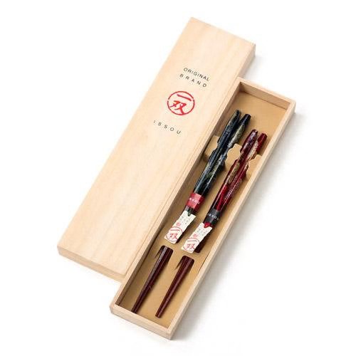 Issou Wakasa lacquer couple chopsticks come in various sizes and styles for men and women, ensuring a comfortable fit. Whether for a wedding or anniversary gift, they convey your sincere blessings.