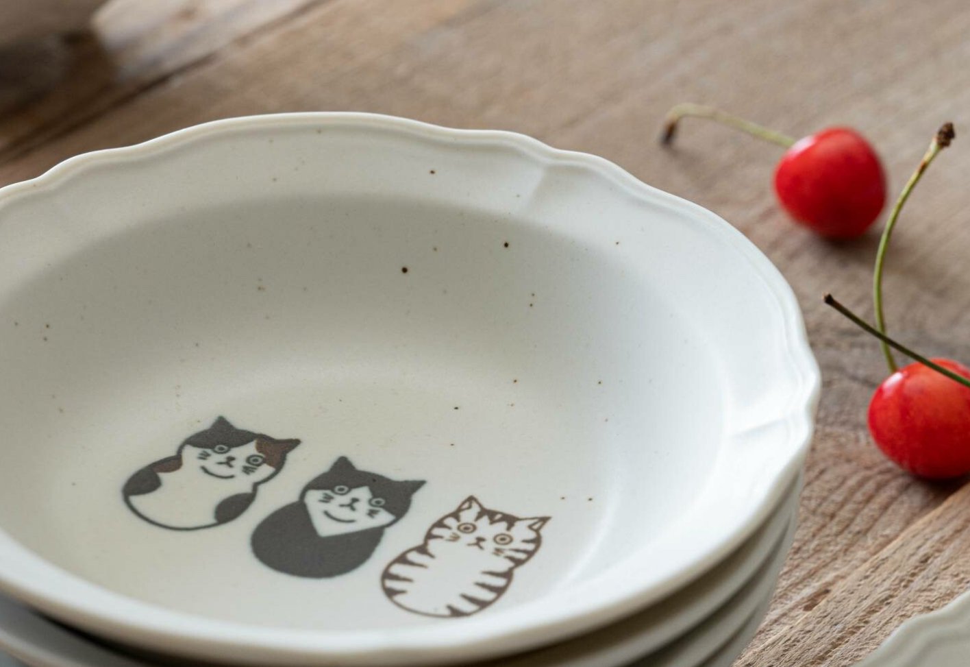 This set of Shichita kitten embossed dinner plates is from the popular "シチタ" series. It features a cute and lazy cat expression, adding fun to the dining table.