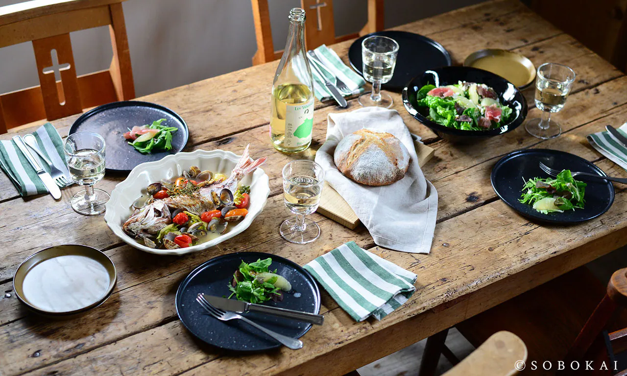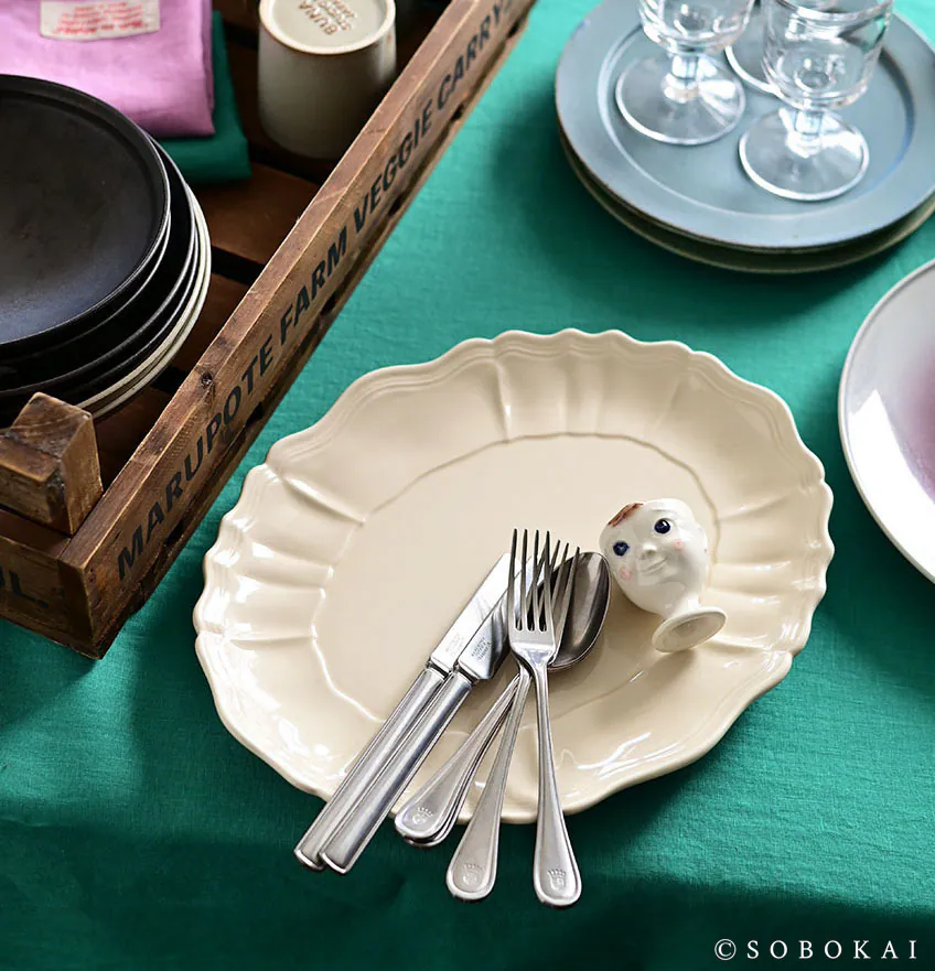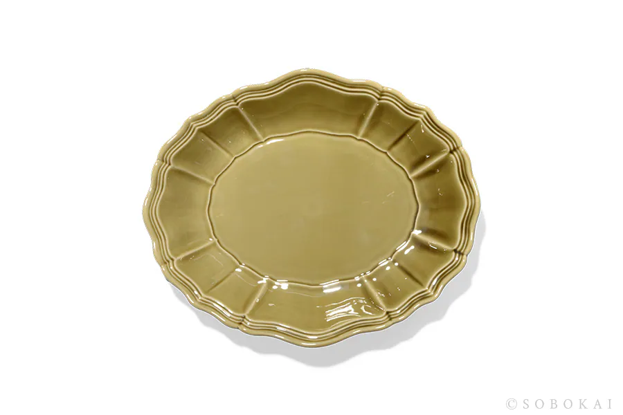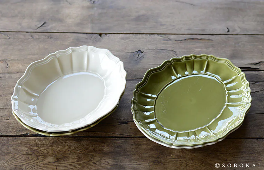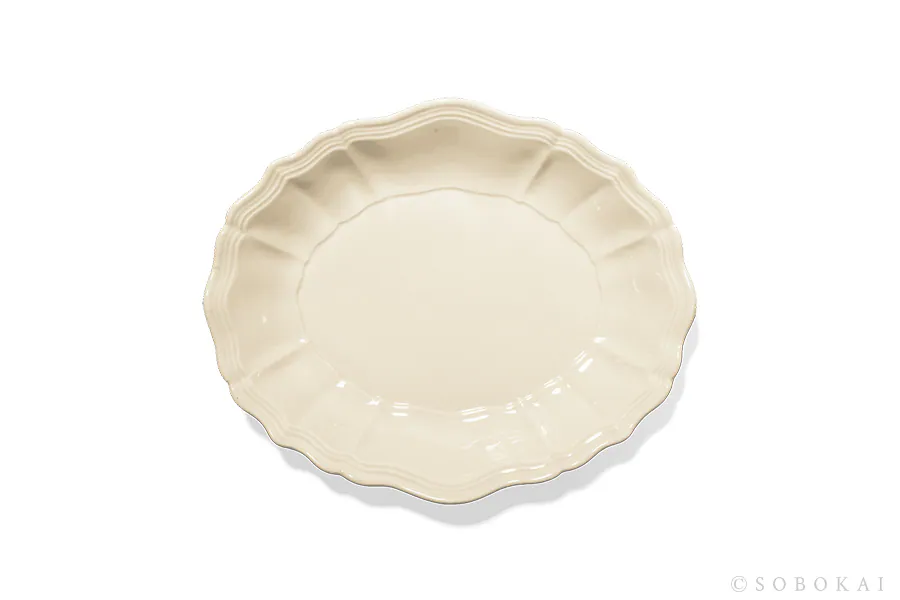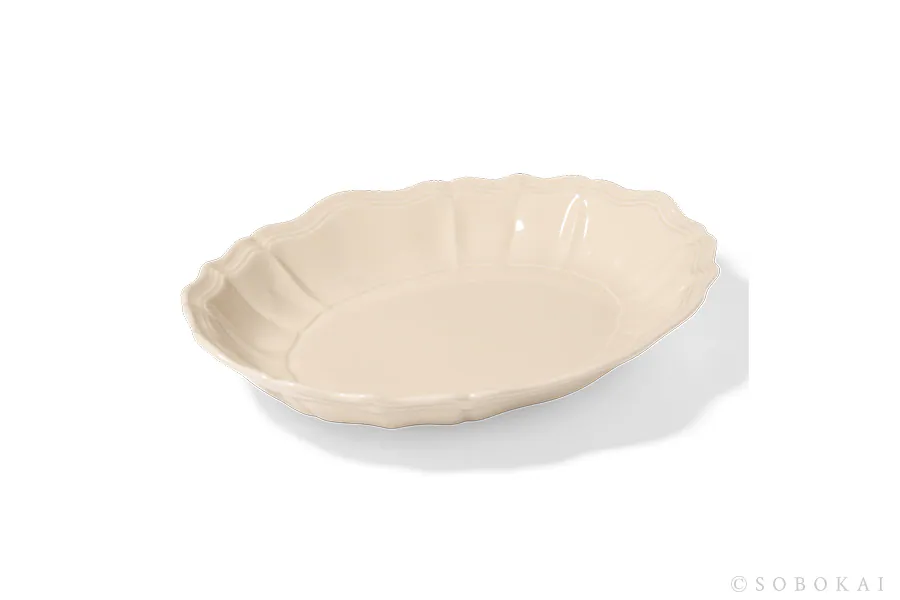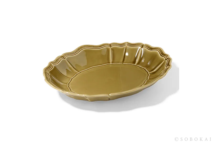Inspired by the solid texture and three-dimensional embossing of antique tableware, its oval shape is both practical and a graceful addition to any dining table.