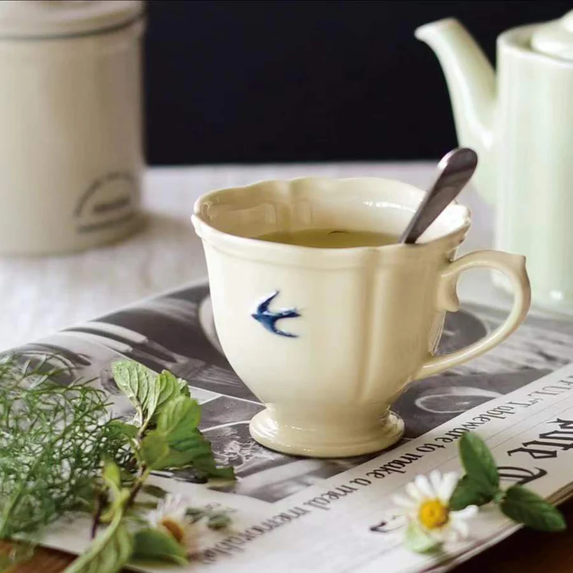 "The early bird catches the worm." Why not rise a little earlier to enjoy your moments? The charming blue birds in the Early Bird series will bring you delightful treats each morning. Each blue plump swallow detail on the sides and bottom is meticulously hand-stamped and painted, making every piece unique with its own variations in color and positioning. Crafted from porcelain, this product is safe for both microwave and dishwasher use, adding convenience to your busy lifestyle. Imagine these adorable blue swallows soaring freely in the sky, infusing you with boundless energy.