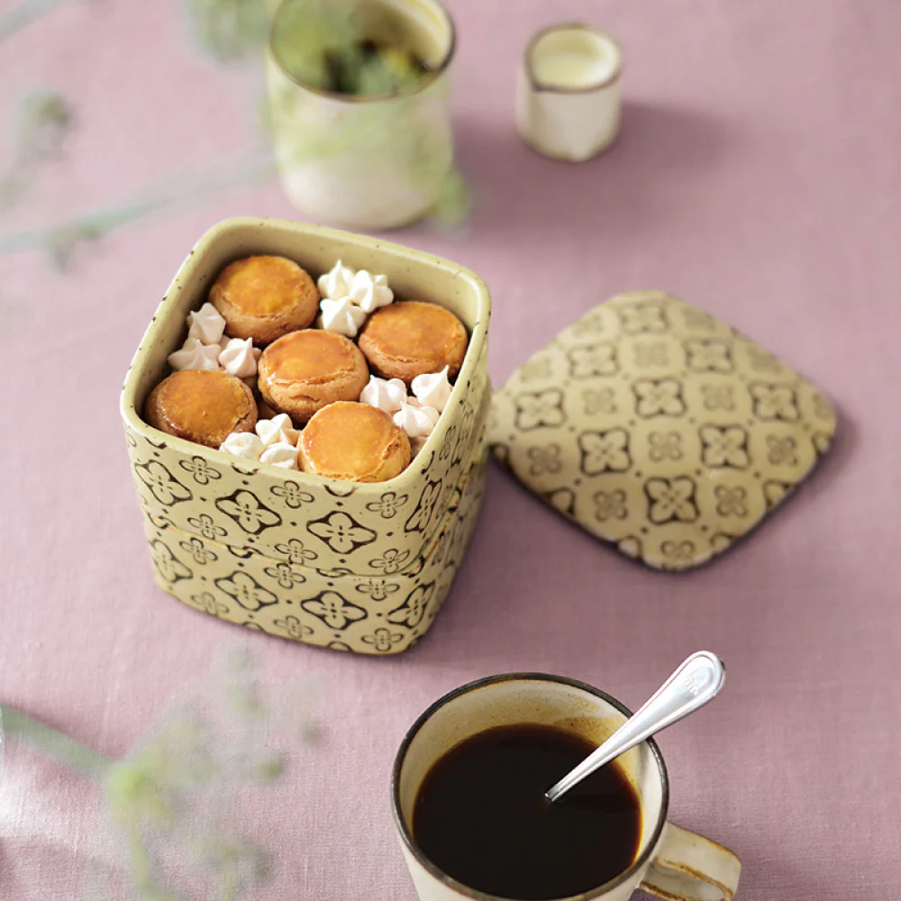 Charming and timeless, the Nobana ojyu (stacking box) combines classical patterns with a rustic yet playful spirit. Nobana, meaning “wildflowers,” draws inspiration from vintage motifs of Europe, Asia, and traditional Japan, creating a piece that naturally harmonizes with any table setting. Each design is hand-applied using transfer printing, where skilled artisans bring subtle warmth and individuality to every box. The result is tableware that feels both nostalgic and refreshing, perfect for adding character and a welcoming atmosphere to everyday dining or festive occasions.