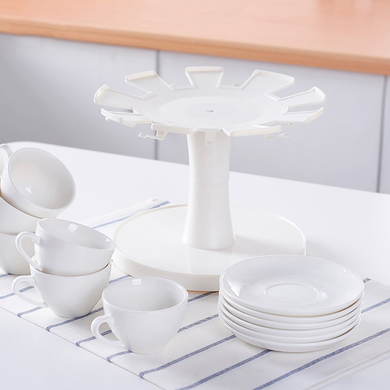 This rotating coffee cup and saucer rack can store 9 sets of coffee cups and saucers at a time, which is convenient and practical. Its rotating design makes it very suitable for use on the dining table or in the kitchen cabinet. Its elegant appearance and durable material perfectly enhance your dining experience.