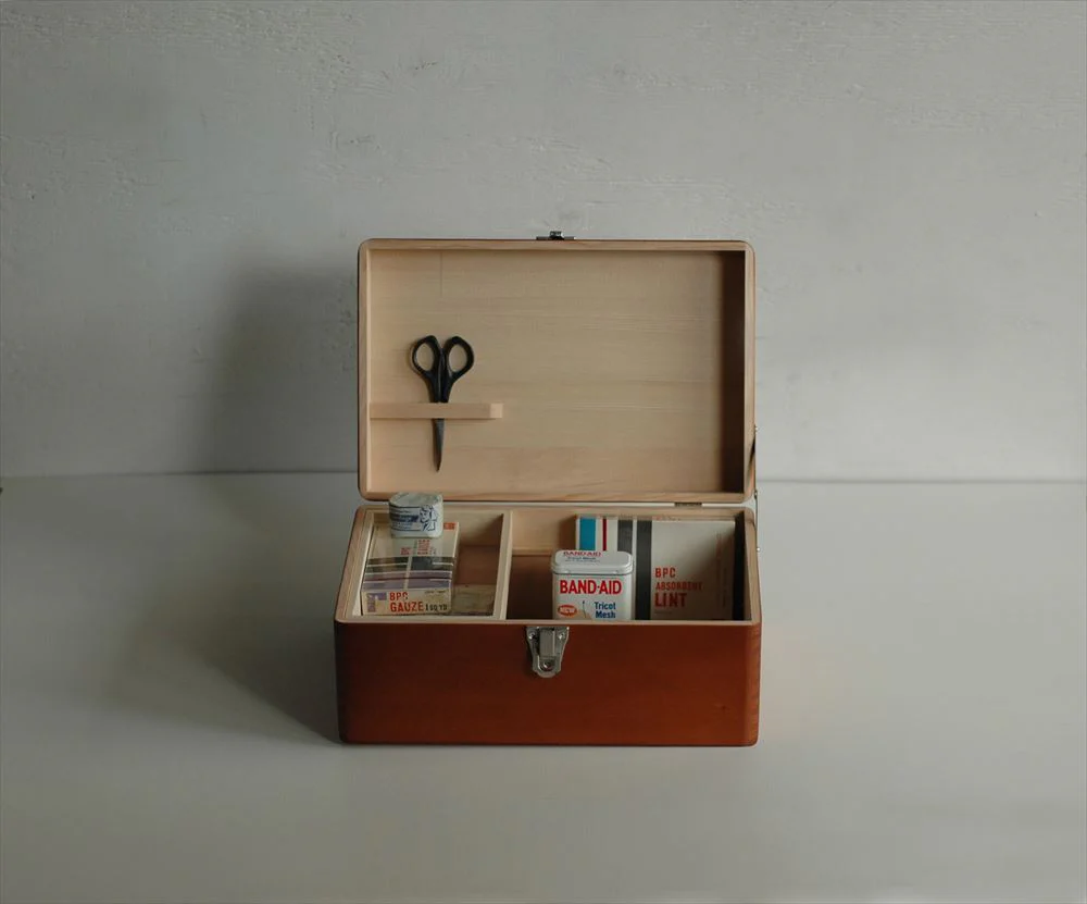 Designed with a focus on both practicality and quality, this medium-sized first-aid kit uses...Japanese HemlockHandmade, the box is deeper than a typical toolbox, exuding a simple, nostalgic, and classic feel.
