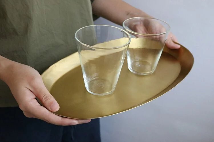 手工製作的黃銅托盤融合了復古與現代的魅力,展現出溫暖的金色調,表面獨特的不規則紋理更為其增添了個性。無論是用於桌面整理、珠寶收納,還是檢查物品,這款托盤都能完美勝任,成為您家居裝飾的亮點。