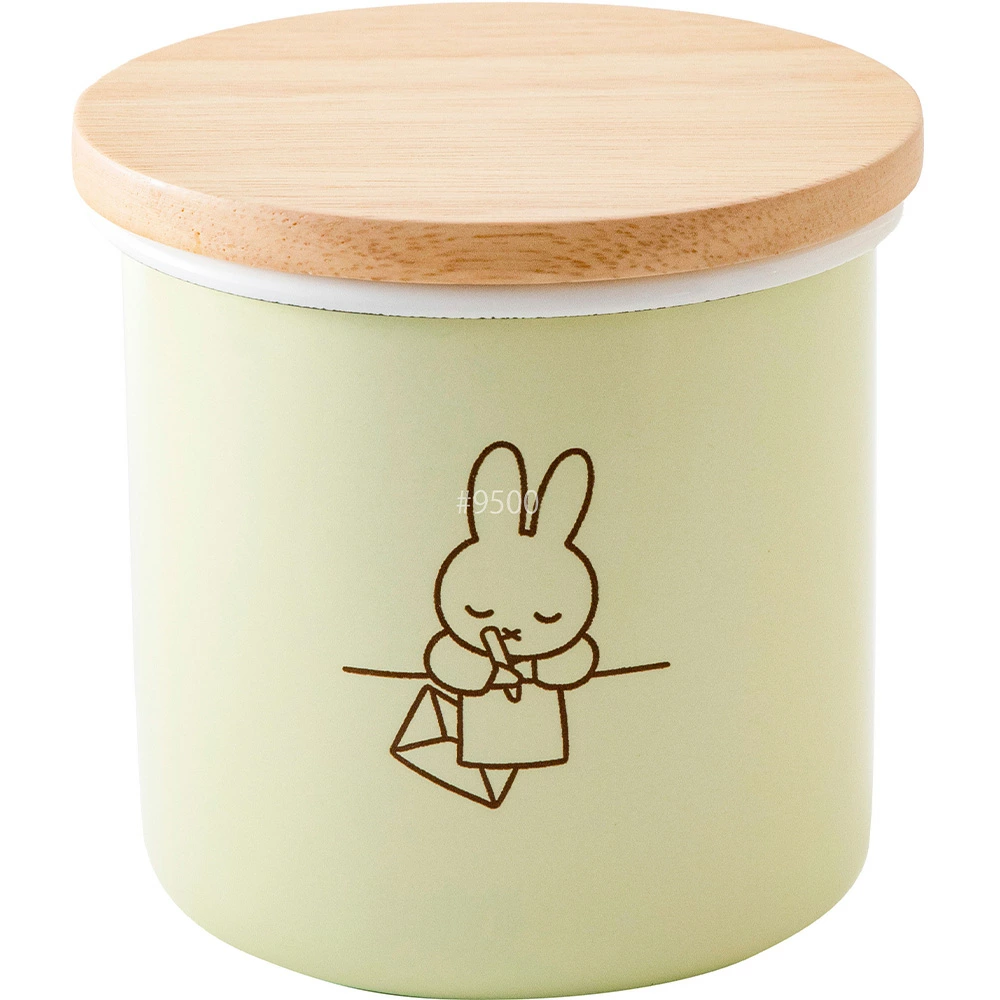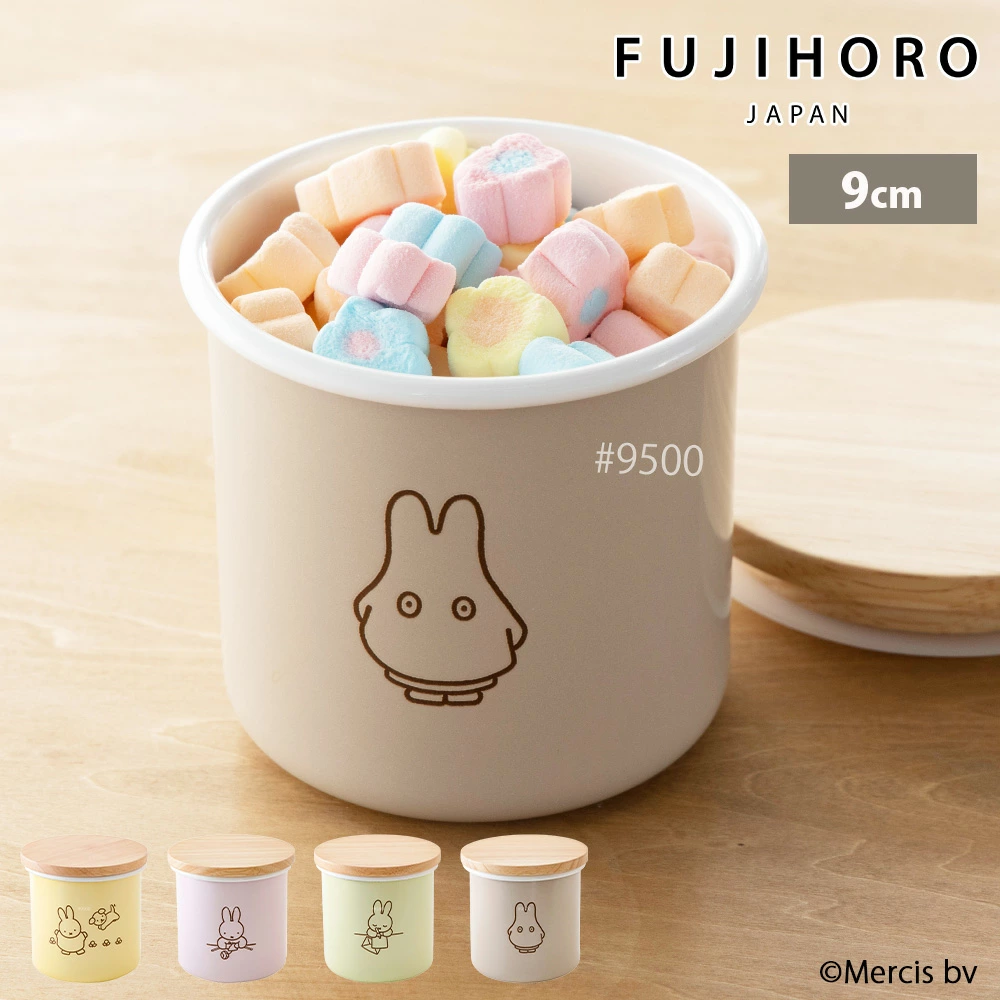 這款 FUJIHORO MIFFY 粉彩系列琺瑯密封罐配有天然木蓋和矽膠密封圈。可愛的粉彩色系為您的廚房增添一抹亮色,無論是用來存放調味料如鹽和糖,還是作為小物件的收納容器,都是完美的選擇。容器的表面、內側及背面都印有迷人的MIFFY圖案,讓實用與美感完美結合。