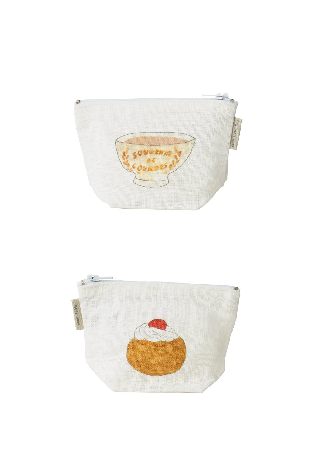 由法國藝術家 Isabelle Boinot 繪製插畫,袋身正反兩面皆有圖案,主題為「Sweet Time」:一面是咖啡歐蕾碗(café au lait bowl),另一面是蛋糕。設有立體側褶(gusset),容量實用,方便整理與收納唇膏、耳機、鎖匙等隨身小物,整齊易找。