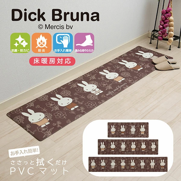 這款 miffy(Dick Bruna)線條藝術 PVC 長地墊,日常清潔非常方便,沾到污漬以濕布輕輕擦拭即可。表面平整沒有接縫與包邊凹位,不易積塵藏污;厚度適中並具一定緩衝感,踏感舒適。另具抗菌、防霉及抗燃特性,有助抑制細菌與霉菌滋生,並提升日常使用安心感,適合用於廚房、玄關、床邊或走道等位置。