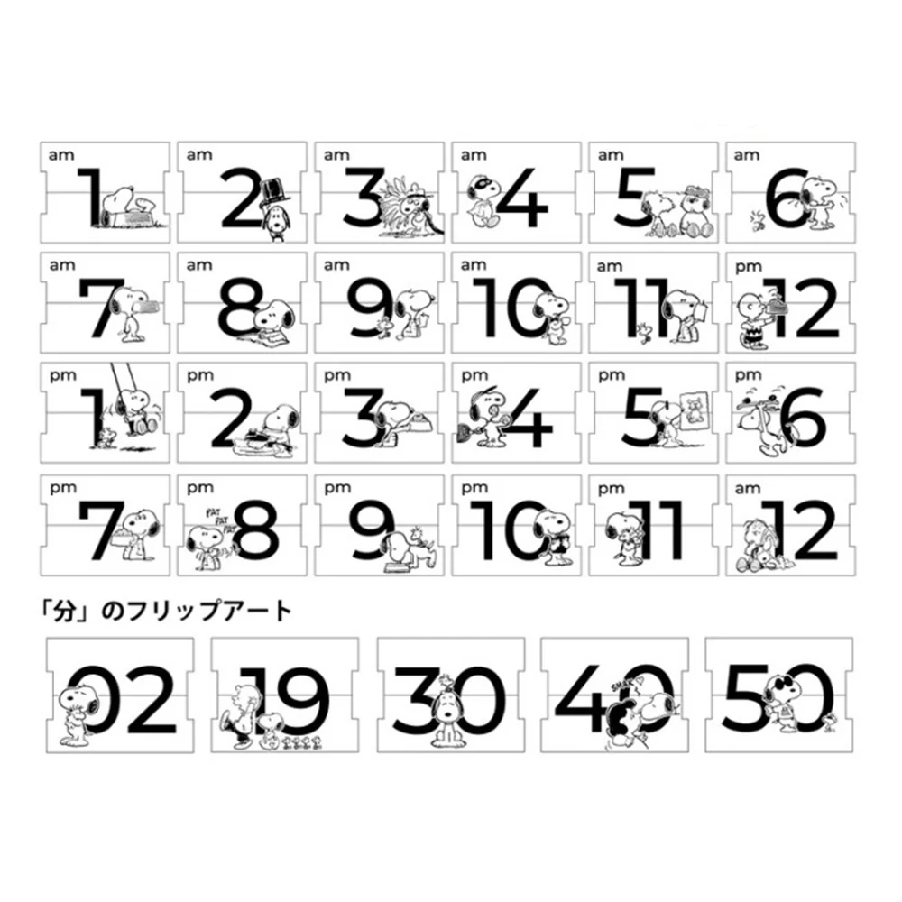 看著時鐘翻頁是有趣且療癒的。隨著時間的變化,史努比也會有不同的插圖。時鐘可以掛在牆上或放在桌面上使用。