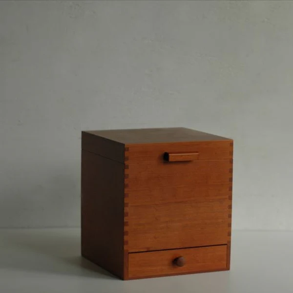 箱身高度充足,可直立收納化妝水、乳液等高身瓶裝用品;內部空間亦可配合分隔整理化妝刷及小型配件。盒內低調刻有品牌標誌,細節展現日本工藝品質。不僅是實用收納用品,更是一件值得細賞的生活器物。